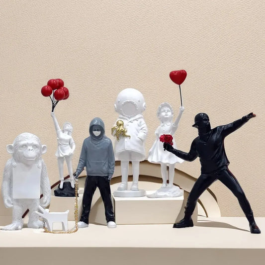 Banksy-Inspired Resin Figurines | Modern Street Art Sculptures for Collectors